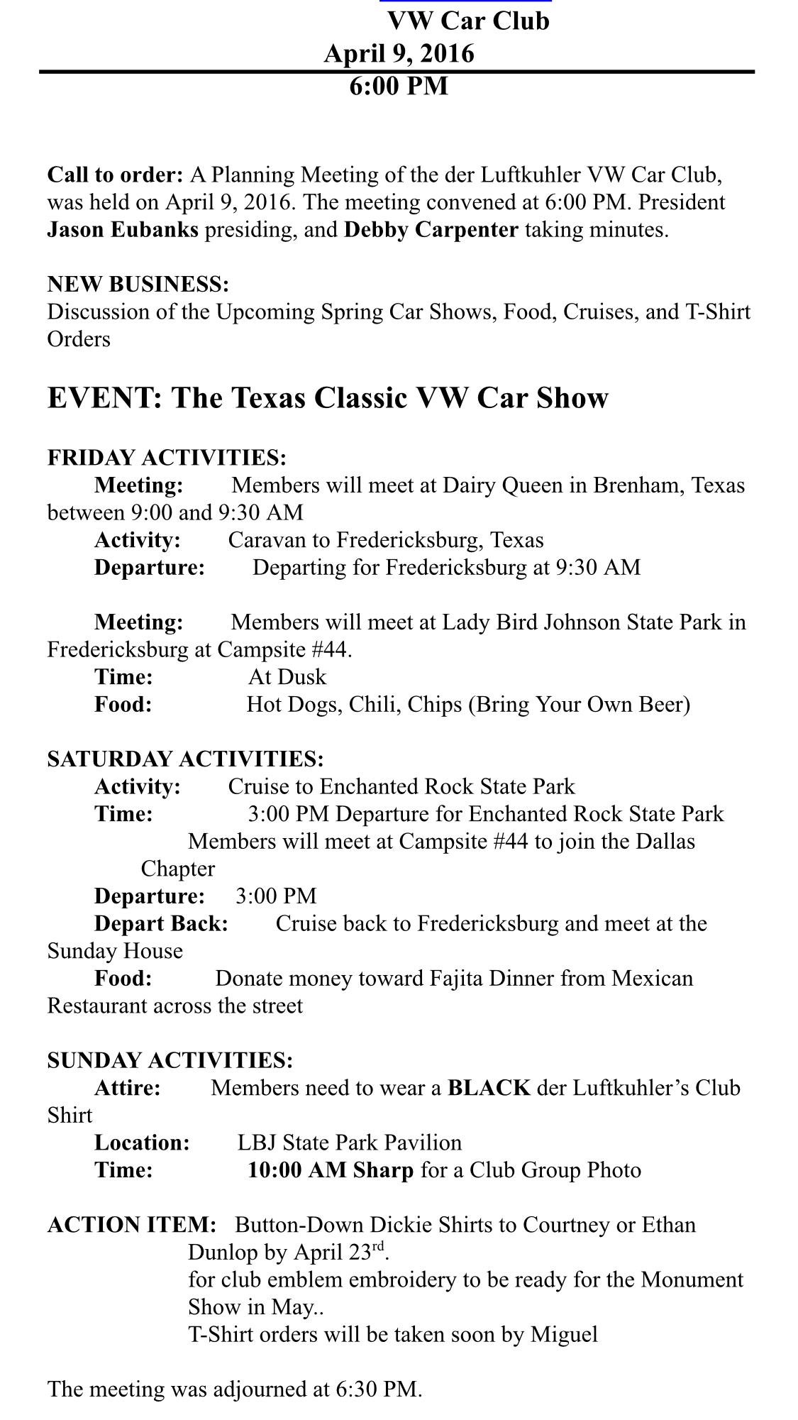 Post subject: Texas Vw classic 2016