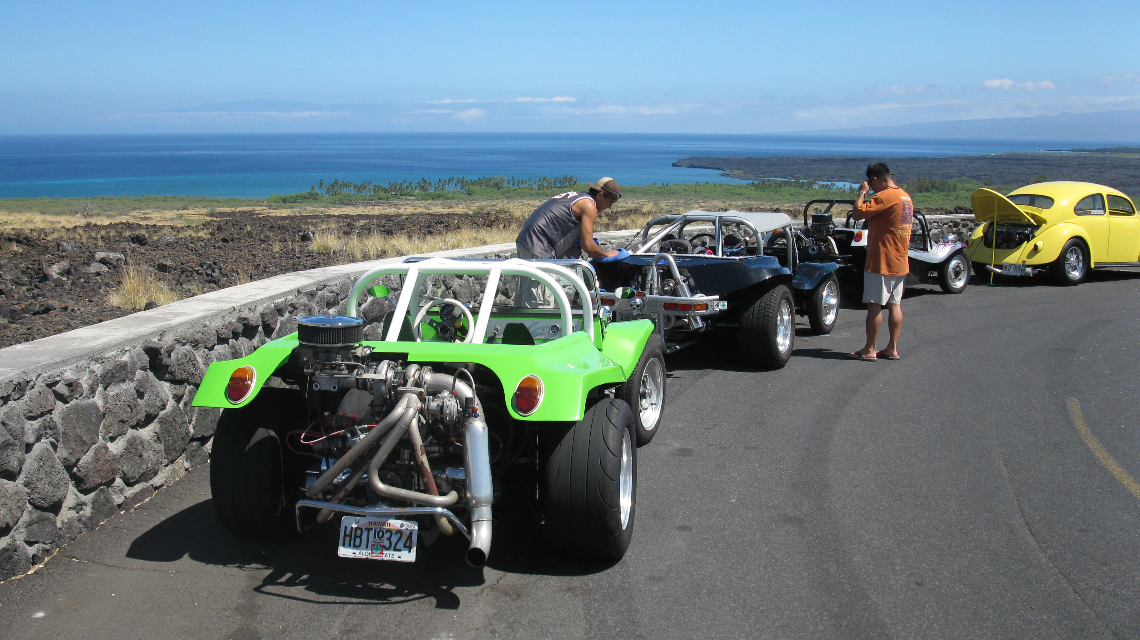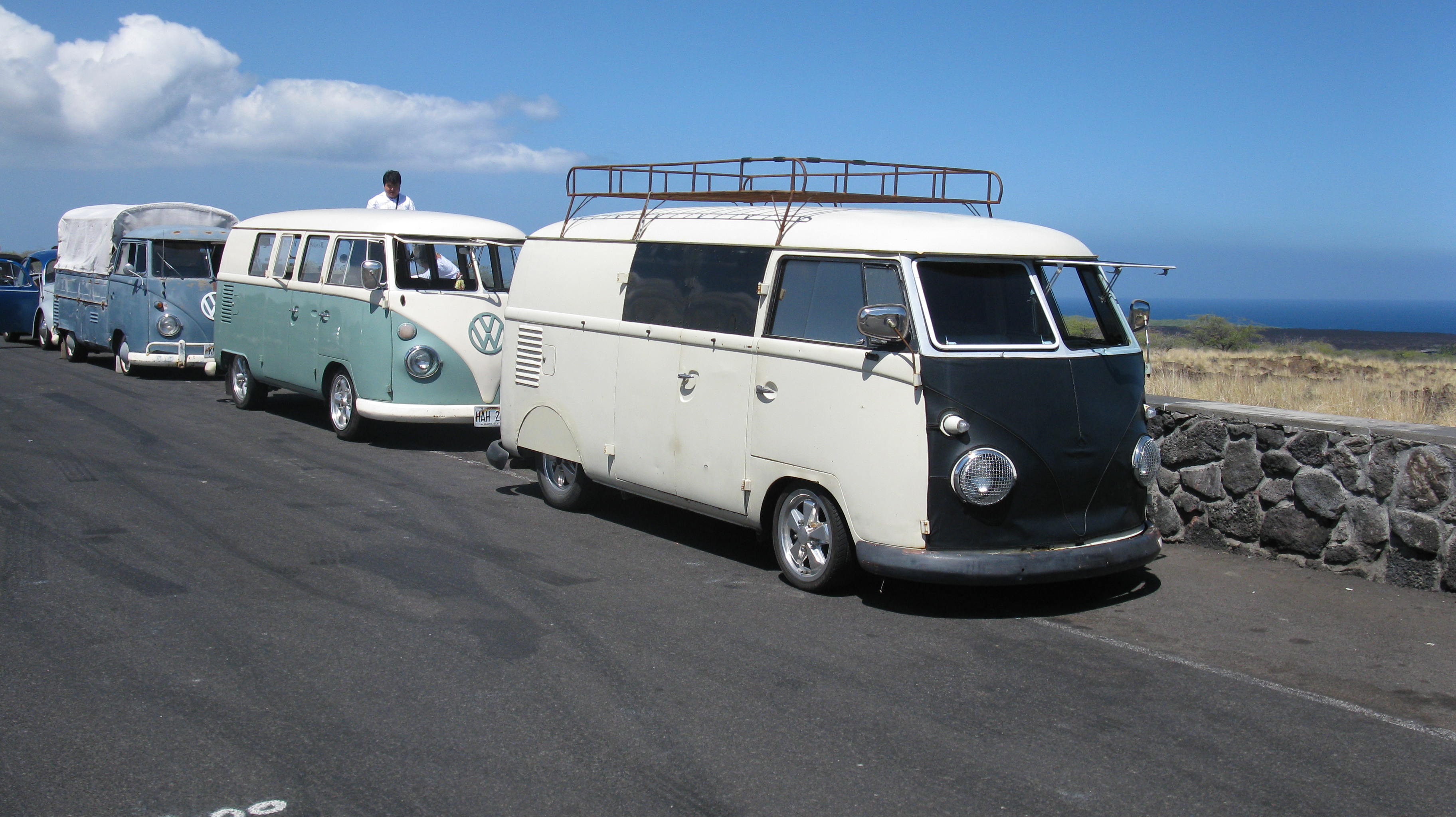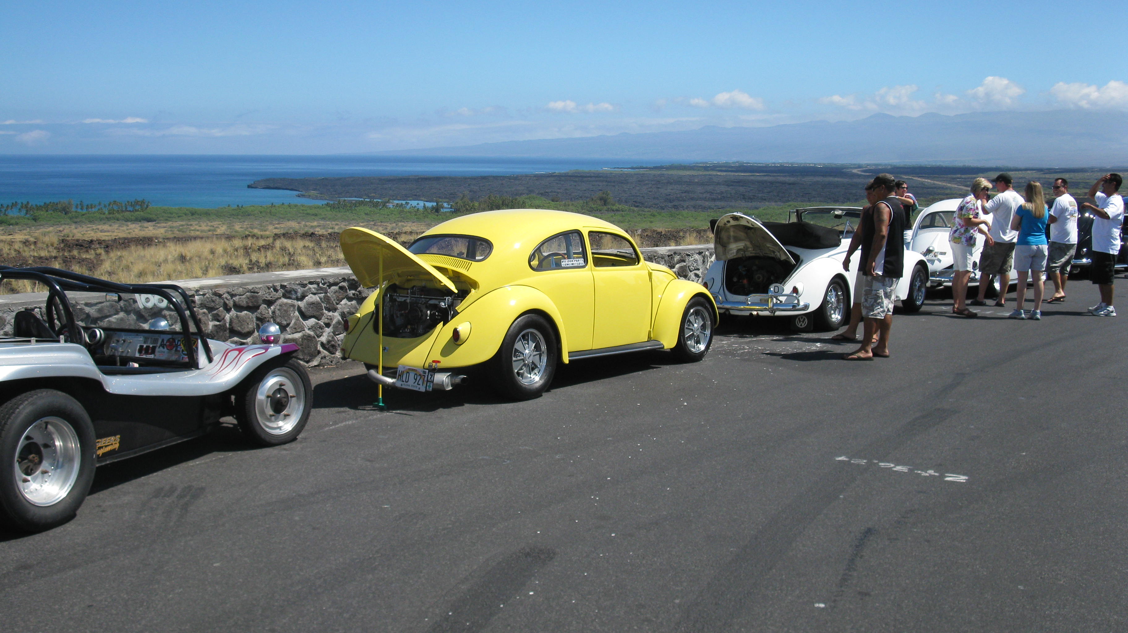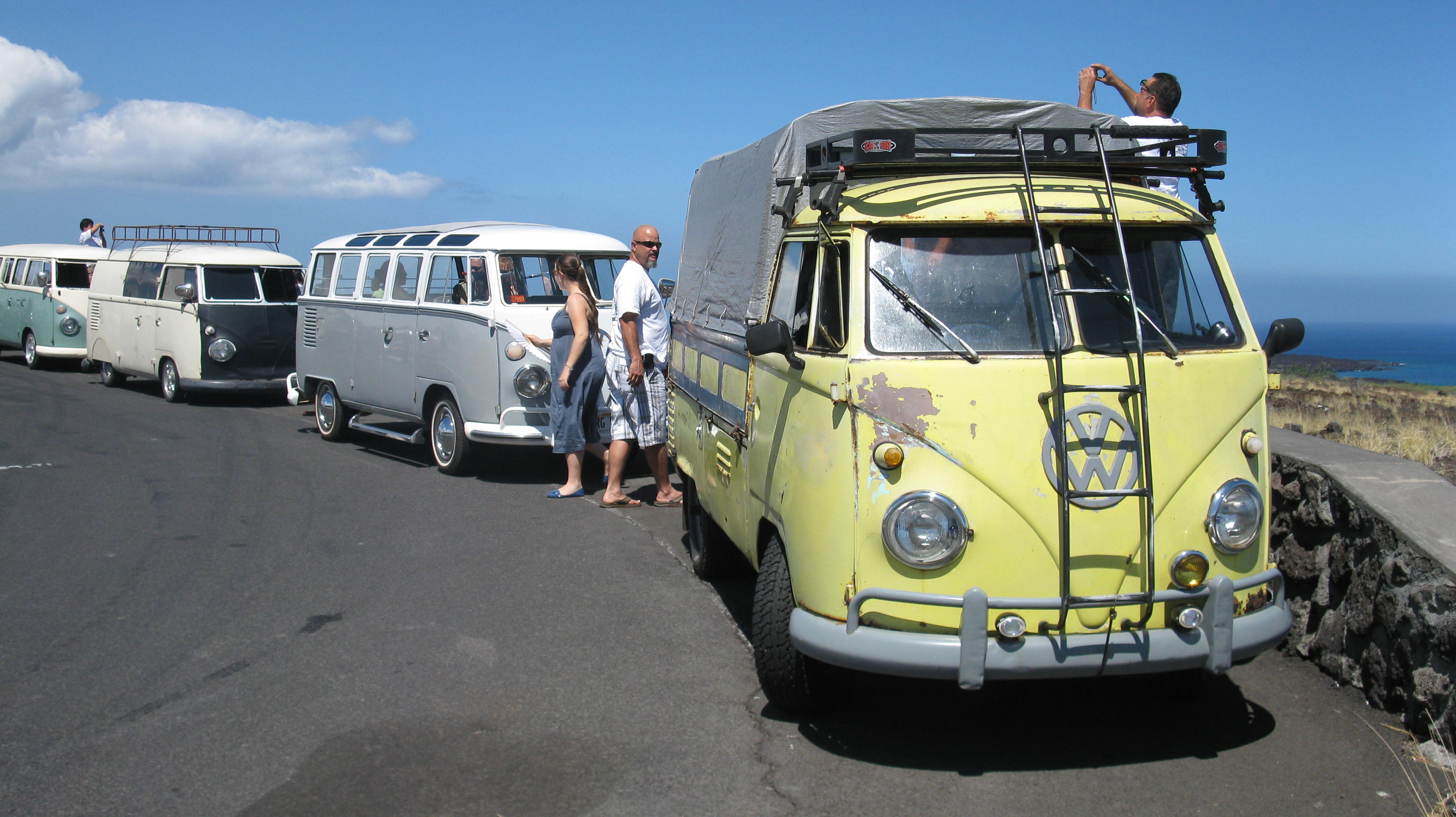 Was just lucky driving by and spotted VW owners out for a spin on a Saturday morning on the Big Island of Hawaii back in 2009. Really Nice Vintage specimens: '55 Rag, '56 Vert, Busses, Buggies - Wow! 8-) We have returned a few times to the Island since then and haven't spotted them again. Great looking group. :thumbs: Brian B