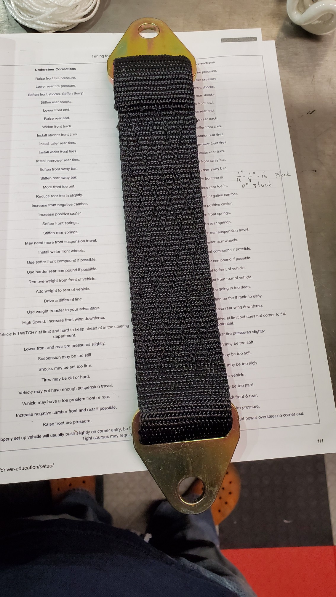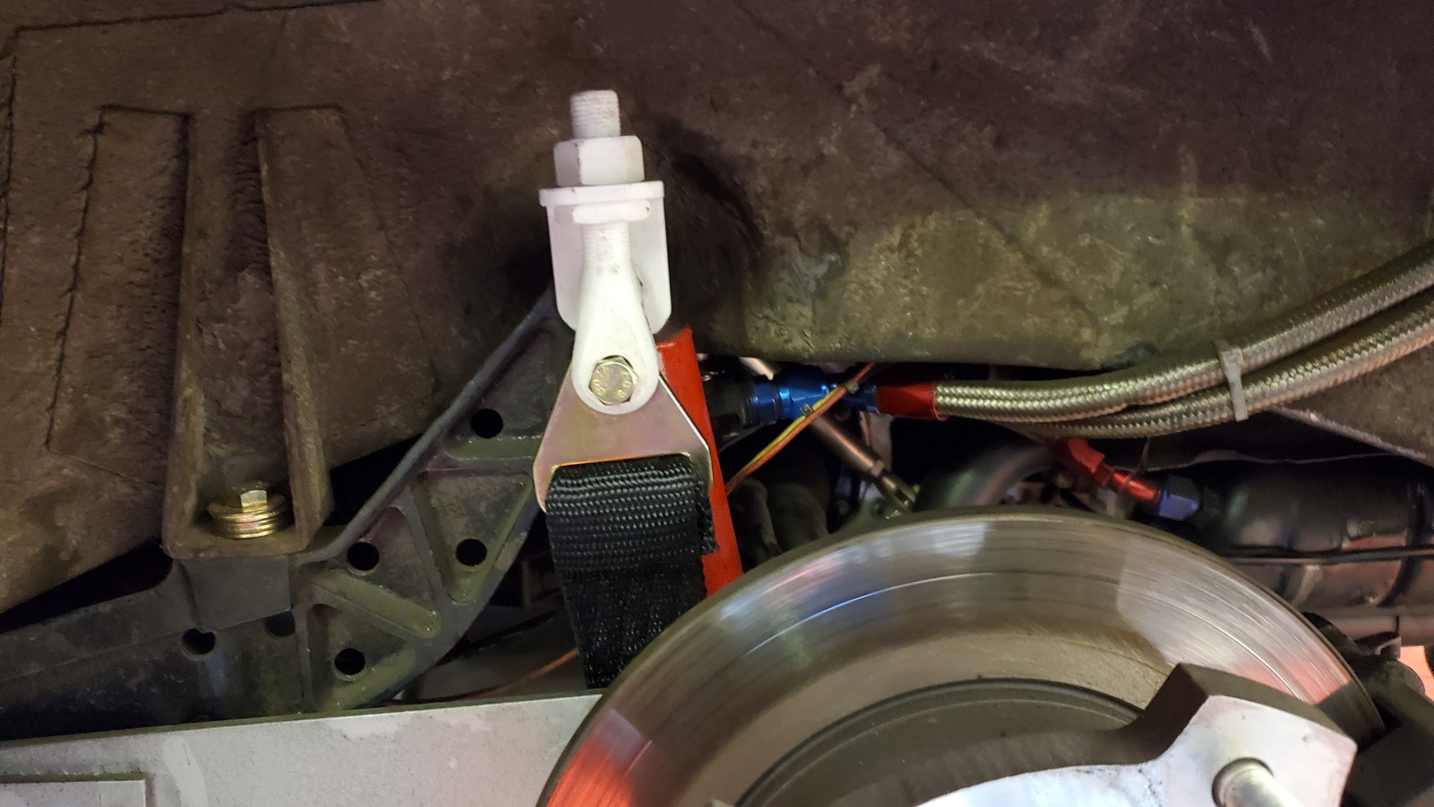 And fit on the car for checking clearance. The upper mount location of the strap can be adjusted a total of 1" for fine tuning.