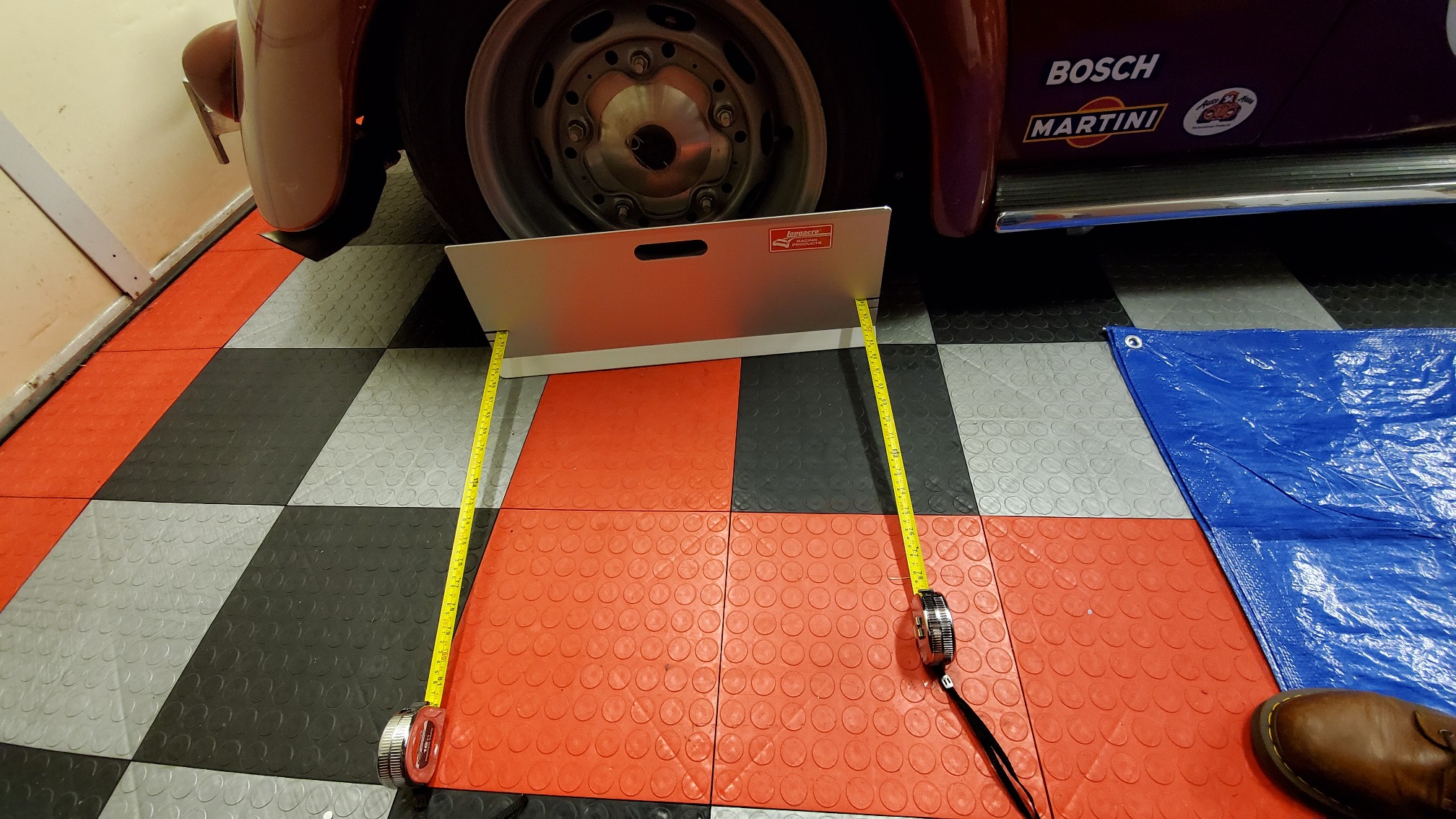 First thing with swing axle cars is controlling the rear suspension, and making sure that the outer tire doesn't jack during a turn. Jacking can lead to poor handling, or rolling the car! Negative camber helps for sure, and I'm at 3-deg negative in the rear right now. But the travel still needs to be limited. There's a couple ways to do it, and I decided to use limit straps. I took a bunch of measurements of the suspension movement and settled on 12" straps.