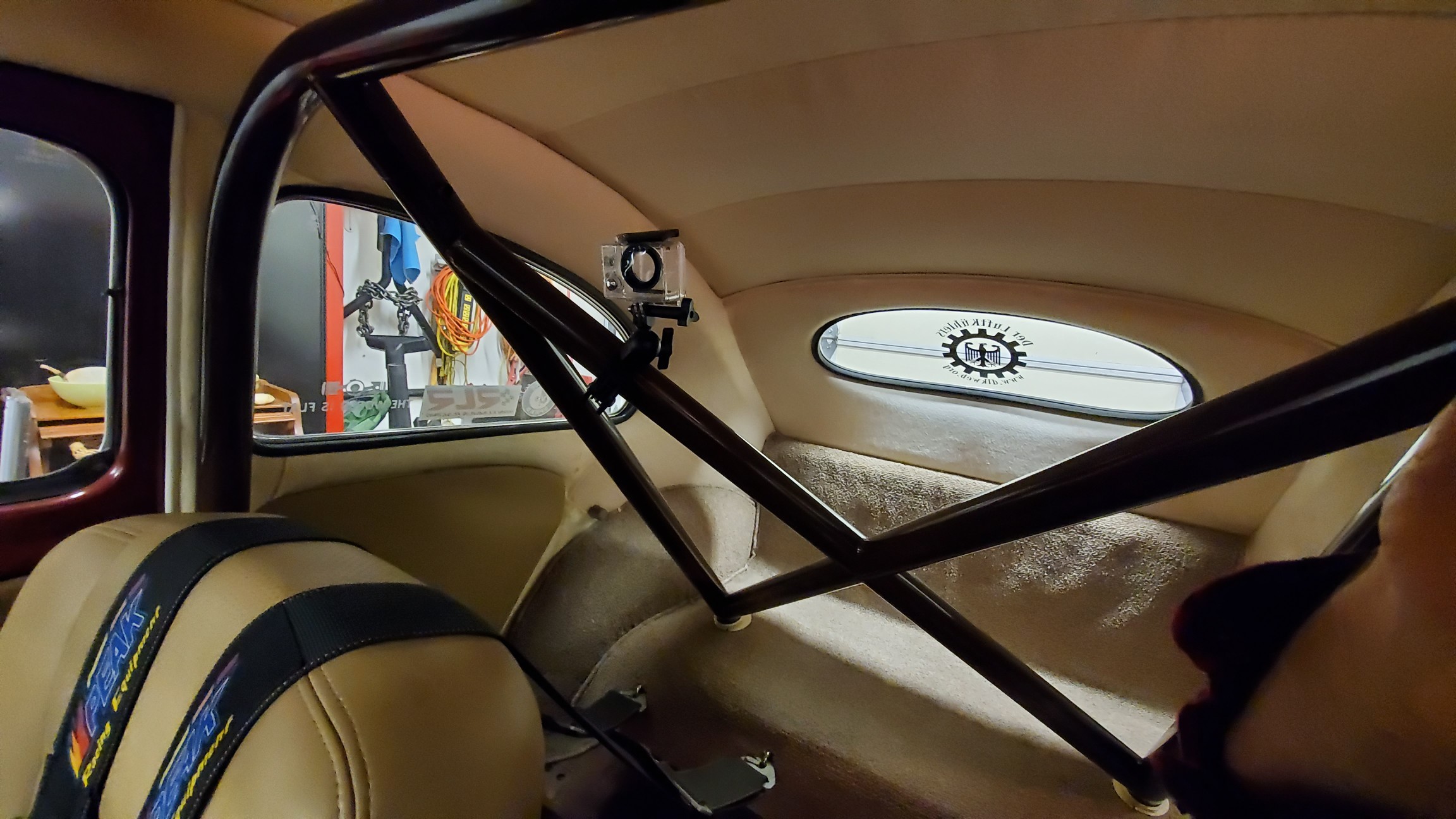 I also plan to record an in-car view with my action cam, here's where I put the mount for it. Pretty handy place to have a rollbar tube!