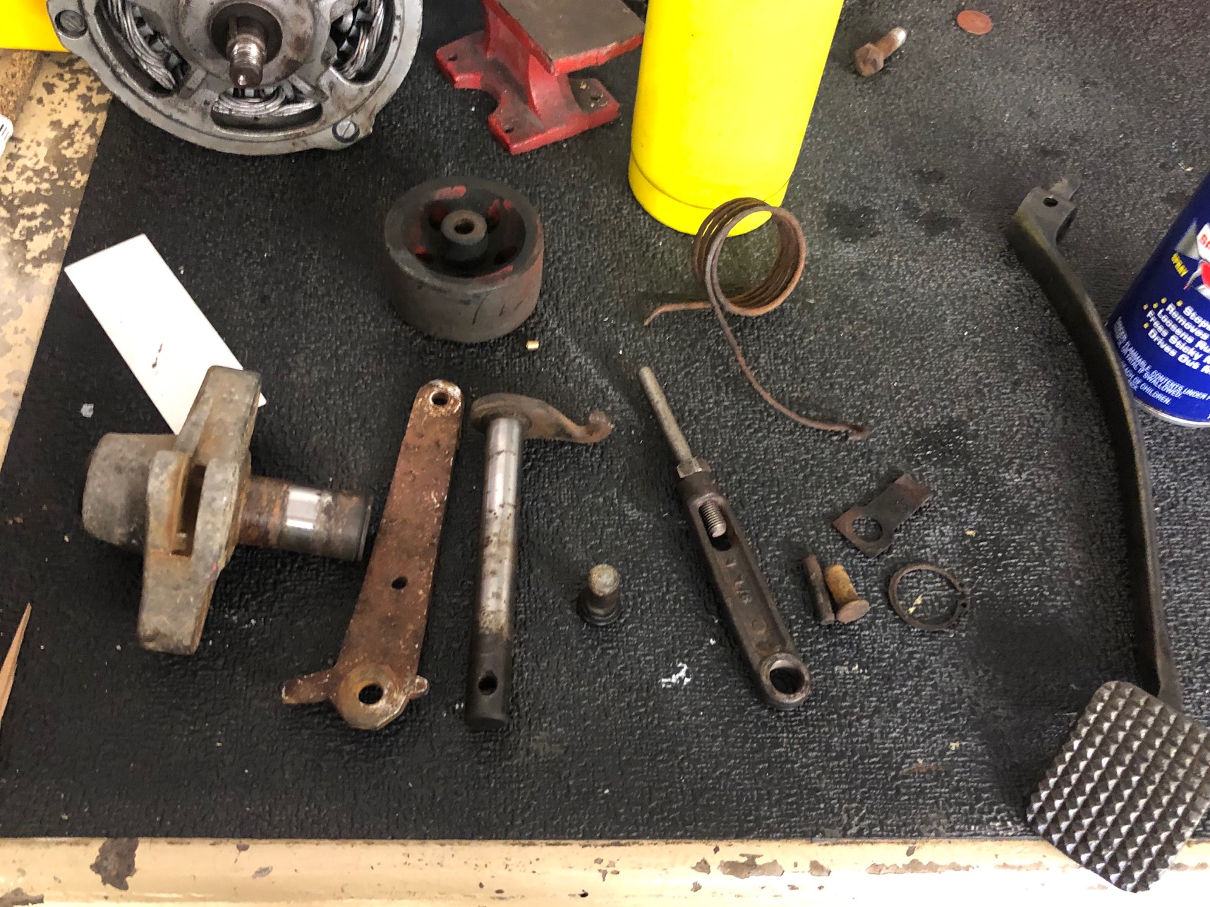 Randy started on cleaning and painting the pedal assembly. I forgot to take a before picture. We are waiting on a few parts to put this back together.