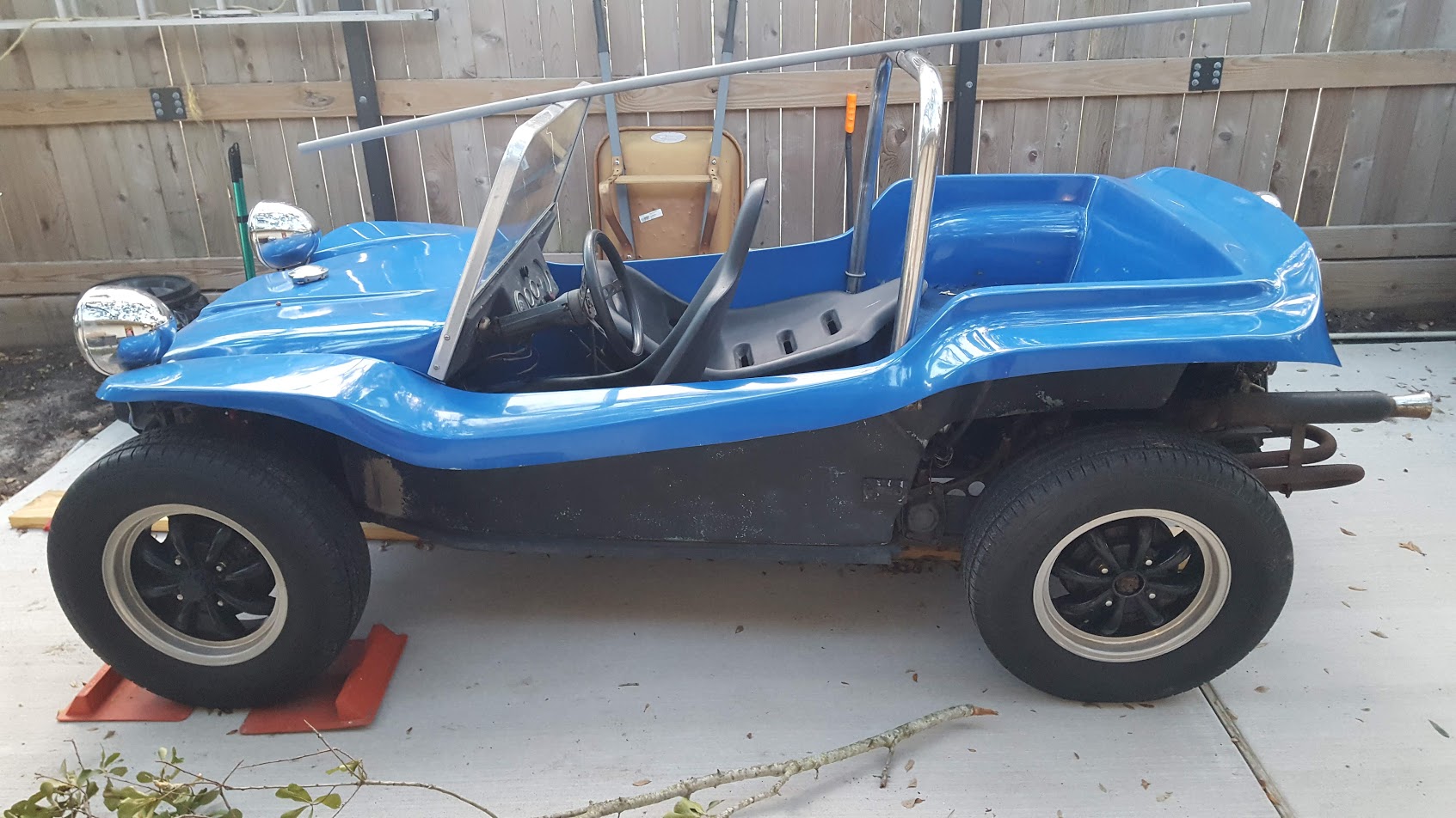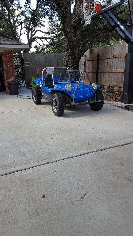 I will try and make the next show, any clue if the area VW shows these days still have the swap-meet section? I need a few things. As if getting my '58's 36HP rebuilt was not enough I impulsed bought a FG dune buggy. I have absolutely no use for it but stumbled on it in my neighborhood and since it was not running I bought it cheap. Instead of staying focused on the '58 I have been tinkering on the buggy. I'm proud to say i have not lost my edge. I was able to get it running in <24hrs. of bringing it home (battery, points, firing order and timing). I think the firing order being off is probably why the previous owner gave up on it when they did. Oh well, now i just need to sort out the title process. Apparently the TXDOT revoked dune buggy and sand rail registrations. But just recently the dune buggy group in Texas lobbied and got some sort of law or amendment written allowing buggies back on the road. The caveat is the registration process has not been defined yet. Anyway here are a few photos of my latest distraction. Anybody have a clue as to what type of buggy it is, or ever seen it before. The previous owner said he owned it for about 20 years.